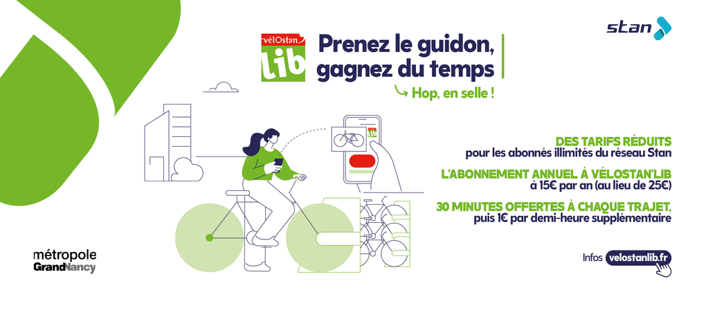 VélOstan'lib est un service du Grand Nancy qui vous permet de louer des vélos en libre service, sur 37 stations réparties dans l'agglomération.